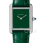 Basic Information ID: WJSA0009 Brand: Cartier Series: Santos Movement Type: Automatic Gender: Men’s Movement Model: 1847 MC Movement Type: Automatic Manufacturer: Cartier Appearance: Case Diameter: 35.1 mm Case Thickness: 8.83 mm Dial Color: Silver-grey Dial Shape: Square Strap Color: Gold Clasp Type: Folding Clasp Case Back: Not Available Weight: Not Available Water Resistance: 100 meters Hour Markers: Roman numerals Clasp Spacing: Not Available Lug Spacing: Not Available Materials: Case Material: 18k rose gold Dial Material: Sunray finish dial, sword-shaped blued steel hands Bezel Material: 18k yellow gold, bezel set with 206 brilliant-cut round diamonds, total weight 0.64 carats Crystal Material: Sapphire crystal Crown Material: Heptagonal 18k rose gold crown, set with a multi-faceted sapphire crystal Strap Material: 18k rose gold, equipped with “SmartLink” bracelet adjustment device (second alligator leather strap) The buckle is made of 18k rose gold. This watch has no other special functions.