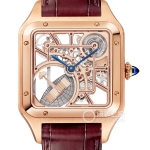 Basic Information: Model Number HPI01558; Brand: Cartier; Series: Tank; Movement Type: Manual Mechanical; Gender: Men’s; Limited Edition: 20; Movement: Movement Model 9628 MC; Movement Type: Manual Mechanical; Manufacturer: Cartier; Movement Diameter: 22.38 x 22.38 mm; Movement Thickness: 3.9 mm; Frequency: 21,600 vibrations per hour; Number of Jewels: 21; Number of Parts: 150; Power Reserve: 36 hours; Case Diameter: 35.2 x 27.8 mm case thickness: 8.15 mm dial color: skeletonized dial shape: square strap color: blue/dark blue buckle type: pin buckle case back: see-through weight: not available water resistance: 30 meters hour markers: Arabic numerals buckle spacing: not available lug spacing: not available materials case material platinum, set with 42 brilliant-cut round diamonds, total weight 1.95 carats dial material sword-shaped polished blued steel hands bezel material platinum with diamonds crystal material synthetic sapphire crystal crown material platinum bead-shaped crown, set with 1 brilliant-cut round diamond 0.12 carats strap material alligator leather buckle material platinum, set with 25 diamonds, total weight 0.20 carats functions This watch has no other special functions.