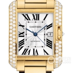 Basic Information ID: W5310015 Brand: Cartier Tank Series Movement Type: Automatic Mechanical Gender: Ladies Movement Model: Cal.077 Movement Type: Automatic Mechanical Manufacturer: Cartier Base Movement: ETA 2671 Dimensions: Case Diameter: 39.2 x 29.8 mm Case Thickness: 9.5 mm Dial Color: White Dial Shape: Square Strap Color: Gold Clasp Type: Folding Clasp Case Back: Solid Weight: Not Available Water Resistance: 30 meters Hour Markers: Roman Numerals Clasp Spacing: Not Available Lug Spacing: Not Available Materials: Case Material: 18k Gold Dial Material: Silver-plated Bezel Material: Not Available Crystal Material: Sapphire Crystal Crown Material: 18k Gold with Diamonds Strap Material: 18k Gold Clasp Material: 18k Gold Functions: Date Display