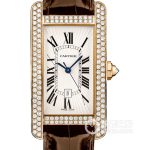 Basic Information ID: WB704751 Brand: Cartier Tank Series Movement Type: Automatic Mechanical Gender: Ladies Movement Model: Cal.077 Movement Type: Automatic Mechanical Manufacturer: Cartier Base Movement: ETA 2671 Dimensions: Case Diameter: 41.6 x 22.6 mm Case Thickness: 9.65 mm Dial Color: Silver White Dial Shape: Square Strap Color: Dark Brown Clasp Type: Folding Clasp Case Back: Solid Weight: Not Available Water Resistance: 30 meters Hour Markers: Roman Numerals Clasp Spacing: Not Available Lug Spacing: Not Available Materials: Case Material: 18k Rose Gold with Diamonds Dial Material: Silver-plated, Blued Steel Sword-shaped Hands Bezel Material: Not Available Crystal Material: Sapphire Crystal Glass Crown Material: 18k Rose Gold Strap Material: Alligator Leather Clasp Material: 18k Rose Gold Functions: Date Display