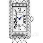 Basic Information ID: WB710011 Brand: Cartier Series: Tank Movement Type: Automatic Gender: Ladies Movement Model: Cal.077 Movement Type: Automatic Manufacturer: Cartier Base Movement: ETA 2671 Dimensions: Case Diameter: 41.6 x 22.6 mm Case Thickness: 9.65 mm Dial Color: Silver-white Dial Shape: Square Strap Color: Silver Clasp Type: Folding Clasp Case Back: Solid Weight: Not available Water Resistance: 30 meters Hour Markers: Roman numerals Clasp Spacing: Not available Lug Spacing: Not available Materials: 18K rhodium-plated white gold Dial Material: Silver-plated, sword-shaped blued steel Bezel Material: 18K rhodium-plated white gold with diamonds Crystal Material: Mineral crystal Crown Material: 18K rhodium-plated white gold Strap Material: 18K rhodium-plated white gold Clasp Material: White gold Functions: Date Display