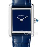 Basic Information ID: WSTA0114 Brand: Cartier Tank Series Movement Type: Quartz Gender: Ladies Movement Type: Quartz Case Diameter: 33.7*25.5 mm Case Thickness: 6.6 mm Dial Color: Blue Dial Shape: Square Strap Color: Blue Clasp Type: Pin Buckle Case Back: Solid Weight: Not Available Water Resistance: 30 meters Hour Marker Type: None Hour Marker Spacing: Not Available Lug Spacing: Not Available Materials: Case Material: Stainless Steel Dial Material: Not Available Bezel Material: Not Available Crystal Material: Sapphire Crystal Glass Crown Material: Stainless Steel with Spinel Strap Material: Alligator Leather Clasp Material: Stainless Steel Functions: This watch has no other special functions.