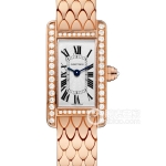 Basic Information Number WT100019 Brand Cartier Series Tank Movement Type Automatic Mechanical Gender Ladies Movement Model Cal.076 Movement Type Automatic Mechanical Manufacturer Cartier Base Movement ETA 2671 Number of Jewels 25 Case Diameter: 39.2 x 29.8 mm Case Thickness: 9.5 mm Dial Color: Diamond-set Dial Shape: Square Strap Color: Dark Brown Clasp Type: Folding Clasp Case Back: None Weight: None Water Resistance: 30 meters Hour Marker Type: None Hour Marker Spacing: None Lug Spacing: None Materials Case Material 18k rose gold with diamond-set Dial Material 18k rose gold with diamond-set Bezel Material 18k rose gold with diamond-set Crystal Material Sapphire Crystal Glass Crown Material Nine-pointed crown set with a brilliant-cut round diamond Strap Material Alligator Leather Clasp Material 18k Rose Gold Functions This watch has no other special functions.
