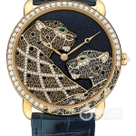 Basic Information Number WA501008 (Medium) Brand Cartier Series Turtle Shape Movement Type Manual Mechanical Gender Ladies Movement Model Cal. 430MC Movement Type Manual Mechanical Manufacturer Cartier Base Movement Piaget 430P Frequency 21,600 vibrations per hour Number of Jewels 18 Appearance Case Diameter: 39 x 31 mm Case Thickness: 8.6 mm Dial Color: Silver-white Dial Shape: Tonneau-shaped Strap Color: Burgundy Clasp Type: Folding Clasp Case Back: Not Available Weight: Not Available Water Resistance: 30 meters Hour Markers: Roman Numerals Clasp Spacing: Not Available Lug Spacing: Not Available Materials Case Material 18k rose gold, set with brilliant-cut round diamonds Dial Material Silvered sunray finish Guilloché dial, sword-shaped blued steel hands Bezel Material 18k rose gold, set with brilliant-cut round diamonds Crystal Material Mineral crystal Crown Material 18k rose gold Strap Material Alligator leather Clasp Material 18k rose gold Functions This watch has no other special functions.