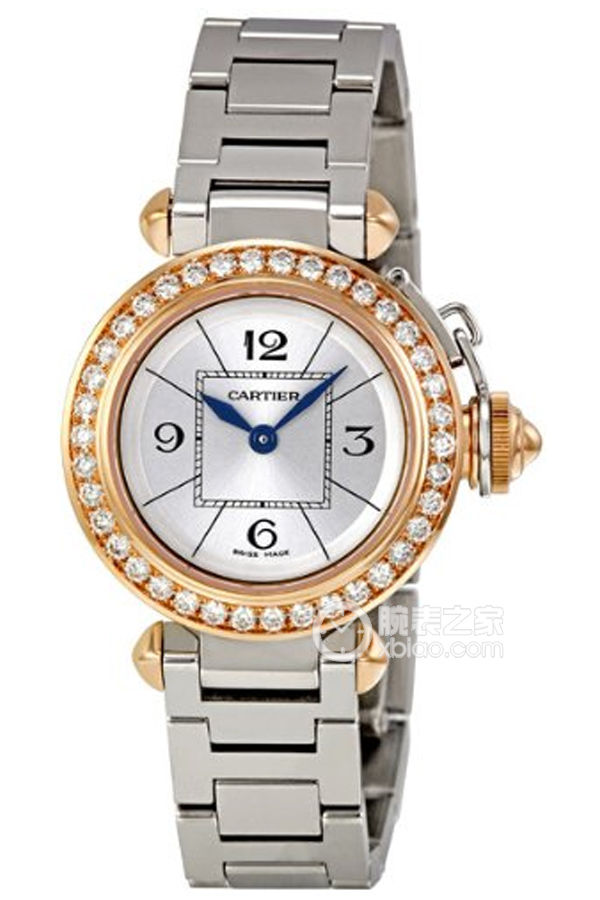 Basic Information ID: WJ124021 Brand: Cartier Movement Type: Quartz Gender: Ladies Movement Model: Cal.157 Movement Type: Quartz Manufacturer: Cartier Base Movement: ETA-ESA 255.111 Number of Jewels: 4 Case Diameter: 27mm Case Thickness: 7.58mm Dial Color: Silver Dial Shape: Round Strap Color: Silver Clasp Type: Folding Clasp Case Back: Solid Weight: Not available Water Resistance: 30 meters Hour Markers: Arabic numerals Clasp Spacing: Not available Lug Spacing: Not available Materials: Case Material: Stainless Steel Dial Material: Not available Bezel Material: 18K Rose Gold with Diamonds Crystal Material: Sapphire Crystal Glass Crown Material: 18K Rose Gold Strap Material: Stainless Steel Clasp Material: Stainless Steel Functions: This watch has no other special functions.