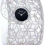 Basic Information Number: G0A40578 Brand: Piaget Series: Extraordinary Treasure Movement Type: Quartz Gender: Women’s Alias: PIAGET High Jewelry Bracelet Watch Limited Edition of 3 Movement: Movement Model: Cal.56P Movement Type: Quartz Manufacturer: Piaget Appearance: Case Diameter: Not Available Case Thickness: Not Available Dial Color: Black Dial Shape: Round Strap Color: Silver Buckle Type: Not Available Case Back: Not Available Weight: Not Available Water Resistance: Not Available Hour Marker Type: None Hour Marker Spacing: Not Available Lug Spacing: Not Available Materials: Case Material: 18k white gold with diamonds, adorned with round brilliant-cut diamonds Dial Material: Not Available Bezel Material: Not Available Crystal Material: Sapphire Crystal Glass Crown Material: 18k white gold Strap Material: 18k white gold with diamonds Buckle Material: 18k white gold with diamonds Functions: This watch has no other special functions.