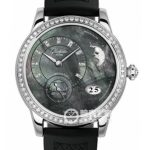 Basic Information ID: 1-90-12-02-12-04 Brand: Glashütte Original Series Ladies’ Movement Type: Automatic Mechanical Gender: Ladies’ Movement Model: 90-12 Movement Type: Automatic Mechanical Manufacturer: Glashütte Original Movement Diameter: 32.6 mm Movement Thickness: 7 mm Frequency: 28,800 vibrations per hour Jewels: 47 Power Reserve: 42 hours Exterior Case Diameter: 39.4 mm Case Thickness: 12 mm Dial Color: Black Dial Shape: Round Strap Color: Black Clasp Type: Pin Buckle Case Back: Screw-fixed Case Back Weight: Not available Water Resistance: 30 meters Hour Markers Type: Diamond-set Hour Markers Clasp Spacing: Not available Lug Spacing: Not available Materials Case Material: Stainless Steel Dial Material: Tahitian Mother-of-Pearl, 18 brilliant-cut diamonds (approx. 0.04ct, TW-VVS) Bezel Material: Stainless Steel, 64 brilliant-cut diamonds (approx. 0.95ct, TW-VVS) Sapphire crystal glass; Stainless steel crown with diamonds (ca. 0.1 ct, TW-VVS); Rubber strap; Stainless steel buckle; Functions: Date display, large date, moon phase.