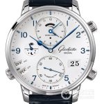 Basic Information Number 1-89-02-03-02-50 (Short Folding Clasp) Brand Glashütte Original Senator Movement Type Automatic Mechanical Gender Men’s Movement Model 89-02 Movement Type Automatic Mechanical Manufacturer Glashütte Original Movement Diameter 39.2 mm Movement Thickness 8 mm Frequency 28,800 vibrations per hour Jewels 63 Power Reserve 72 hours Case Diameter: 44 mm Case Thickness: 14 mm Dial Color: White Dial Shape: Round Strap Color: Dark Blue Clasp Type: Folding Clasp Case Back: Screw-fixed Case Back Weight: Not available Water Resistance: 50 meters Hour Marker Type: Arabic Numerals Clasp Spacing: Not available Lug Spacing: Not available Materials Case Material: Stainless Steel Dial Material: White matte lacquer, blue hour markers and Arabic numerals, hands, blue bezel Material: Not available Crystal Material: Sapphire Crystal Crown Material: 18k white gold with double G logo Strap Material: Louisiana alligator leather Clasp Material: Stainless Steel Functions: Large Date Power Reserve Display