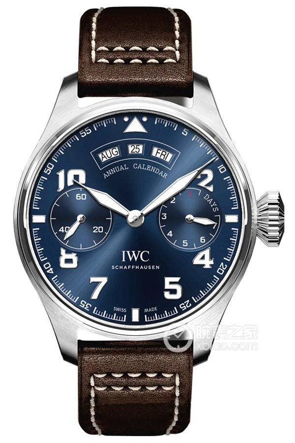 Basic Information ID: IW502705 Brand: IWC Pilot’s Watch Series: Automatic Mechanical Gender: Men’s Movement: 52850 Movement Type: Automatic Mechanical Manufacturer: IWC Appearance: Case Diameter: 46mm Case Thickness: Not Available Dial Color: Blue Dial Shape: Round Strap Color: Dark Brown Clasp Type: Folding Clasp Case Back: Transparent Weight: Not Available Water Resistance: 60 meters Hour Markers: Arabic numerals, luminous Clasp Spacing: Not Available Lug Spacing: Not Available Materials: Case Material: 18k white gold Dial Material: Not Available Bezel Material: Not Available Crystal Material: Sapphire Crystal Glass Crown Material: Not Available Strap Material: Calfskin Buckle Material: 18k white gold Functions: Date Display, Day Display, Month Display, Annual Calendar, Power Reserve Display (Long Power Reserve)