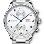 Basic Information: ID: IW371626; Brand: IWC; Series: Portuguese; Movement Type: Automatic; Gender: Men’s; Movement Model: 69355; Movement Type: Automatic; Manufacturer: IWC; Frequency: 28,800 vibrations per hour; Number of Parts: 194; Power Reserve: 46 hours; Appearance: Case Diameter: 41 mm; Case Thickness: 13.1 mm; Dial Color: Blue; Dial Shape: Round; Strap Color: Blue; Buckle Type: Pin Buckle; Case Back: Transparent; Weight: Not available; Water Resistance: 30 meters; Hour Markers: Arabic numerals; Clasp Spacing: Not available; Lug Spacing: Not available; Materials: Case Material: 18k White Gold; Dial Material: Not available; Bezel Material: 18k White Gold; Crystal Material: Sapphire Crystal; Crown Material: 18k White Gold; Strap Material: Leather; Buckle Material: 18k White Gold; Functions: Chronograph