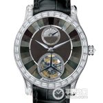 Basic Information Number: Q1663490 Brand: Jaeger-LeCoultre High Jewelry Watch Movement Type: Automatic Mechanical Gender: Men’s Movement Model: Cal.978 Movement Type: Automatic Mechanical Manufacturer: Jaeger-LeCoultre Movement Thickness: 7.10 mm Frequency: 28,800 vibrations per hour Jewels: 33 Parts: 302 Power Reserve: 45 hours Appearance: Case Diameter: Not available Case Thickness: Not available Dial Color: Multicolor Dial Shape: Round Strap Color: Black Clasp Type: Folding Clasp Case Back: Transparent Weight: Not available Water Resistance: 50 meters Hour Marker Type: Bat Hour Markers Clasp Spacing: Not available Lug Spacing: Not available Materials: Case Material: 18k white gold with diamonds Dial Material: Mother-of-Pearl Bezel Material: 18k white gold with diamonds Crystal Material: Sapphire Crystal Crown Material: Not available Strap Material: Alligator Leather Clasp Material: 18k White Gold Functions: Dual Time Zone Tourbillon