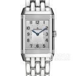 Basic Information ID: 2608130 Brand: Jaeger-LeCoultre Reverso Movement Type: Manual Mechanical Gender: Ladies Movement Model: Cal. 846/1 Movement Thickness: 2.9 mm Frequency: 21,600 vibrations per hour Jewels: 18 Parts: 93 Case Diameter: 34.2 x 21 mm Case Thickness: 7.4 mm Dial Color: Silver-grey Dial Shape: Square Strap Color: Silver Clasp Type: Folding Clasp Case Back: Solid Weight: Not available Water Resistance: 30 meters Hour Markers: Arabic numerals Clasp Spacing: Not available Lug Spacing: Not available Materials: Case Material: Stainless Steel Dial Material: Guilloché, Vertical Brushed, Black Displacement Numerals Bezel Material: Stainless Steel Crystal Material: Sapphire Crystal Crown Material: Stainless Steel Strap Material: Stainless Steel Clasp Material: Stainless Steel Functions: Dual Time Zone