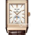 Basic Information ID: 3912420 Brand: Jaeger-LeCoultre Reverso Movement Type: Manual Mechanical Gender: Men’s Movement Model: 853 Movement Type: Manual Mechanical Manufacturer: Jaeger-LeCoultre Movement Thickness: 5.15 mm Frequency: 21,600 vibrations per hour Number of Parts: 280 Power Reserve: 42 hours Dimensions: Case Diameter: 49.7 x 29.9 mm Case Thickness: 10.9 mm Dial Color: Silver-grey Dial Shape: Square Strap Color: Dark Brown Clasp Type: Folding Clasp Case Back: Solid Weight: Not available Water Resistance: 30 meters Hour Marker Type: Bat Hour Markers Clasp Spacing: Not available Lug Spacing: Not available Materials: Case Material: 18k Rose Gold Dial Material: Front Dial: Silver Grained, Applied Hour Markers Case Back Dial: Dark Grey Clasp-and-Turquoise, Applied Hour Markers Bezel Material: Not available Crystal Material: Sapphire Crystal Crown Material: 18k Rose Gold Strap Material: Leather Clasp Material: 18k Rose Gold Functions: Date Display, Day Display, Month Display, Moon Phase, Dual Time Zone