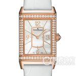 Basic Information Number: Q3212402 Brand: Jaeger-LeCoultre Reverso Movement Type: Manual Mechanical Gender: Ladies Movement Model: Cal. 846/1 Movement Thickness: 2.9 mm Frequency: 21,600 vibrations per hour Jewels: 18 Parts: 93 Case Diameter: 40 x 24 mm Case Thickness: 7.9 mm Dial Color: White Dial Shape: Square Strap Color: White Clasp Type: Folding Clasp Case Back: Transparent Weight: Not available Water Resistance: 30 meters Hour Markers: Bat markers, Arabic numerals Clasp Spacing: Not available Lug Spacing: Not available Materials: Case Material: 18k rose gold Dial Material: Mother-of-pearl Bezel Material: 18k rose gold Diamonds: 93~1.02 carats Crystal Material: Sapphire crystal Crown Material: 18k rose gold Strap Material: Alligator leather Clasp Material: 18k rose gold Functions: This watch has no other special functions.
