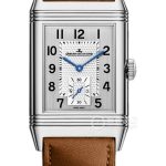 Basic Information Number: Q3848423 Brand: Jaeger-LeCoultre Reverso Movement Type: Manual Mechanical Gender: Men’s Movement Type: Manual Mechanical Appearance: Case Diameter: 47*28.3 mm Case Thickness: 10.34 mm Dial Color: Silver Gray Dial Shape: Square Strap Color: Light Brown Clasp Type: Folding Clasp Case Back: Solid Weight: Not Available Water Resistance: 30 Meters Hour Marker Type: Bat Hour Markers Clasp Spacing: Not Available Lug Spacing: Not Available Materials: Case Material: Stainless Steel Dial Material: Black printed numerals, silver guilloché, vertically brushed Bezel Material: Stainless Steel Crystal Material: Sapphire Crystal Crown Material: Stainless Steel Strap Material: Leather Clasp Material: Stainless Steel Functions: This watch has no other special functions.