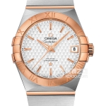 Basic Information ID: 123.10.38.21.03.001 Brand: Omega Series: Constellation Movement Type: Automatic Mechanical Gender: Men’s Movement Model: 8500 Movement Type: Automatic Mechanical Manufacturer: Omega Balance Wheel: Free-sprung Balance Wheel Frequency: 25,200 vibrations per hour Power Reserve: 60 hours Technical Certifications: Swiss Official Chronometer Testing Institute (COSC) Appearance: Case Diameter: 38 mm Case Thickness: 12.5 mm Dial Color: Blue Dial Shape: Round Strap Color: Silver Clasp Type: Butterfly Clasp Case Back: Transparent Weight: 161 grams Water Resistance: 100 meters Hour Marker Type: Bat-shaped Hour Markers Clasp Spacing: Not available Lug Spacing: 24 mm Materials: Case Material: Stainless Steel Dial Material: Blue Dial with Embossed Diamond Pattern Bezel Material: Stainless Steel Crystal Material: Domed Double-sided Anti-reflective Sapphire Crystal Crown Material: Stainless Steel Strap Material: Stainless Steel Clasp Material: Stainless Steel Functions: Date Display