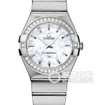 Basic Information: ID: 123.15.27.60.05.001; Brand: Omega; Series: Constellation; Movement Type: Quartz; Gender: Ladies; Movement Model: Cal.1376; Movement Type: Quartz; Manufacturer: Omega; Movement Diameter: 9 x 15.15 mm; Movement Thickness: 1.8 mm; Number of Jewels: 5; Battery Life: 4 years; Case Diameter: 27 mm; Case Thickness: Not available; Dial Color: Silver-white; Dial Shape: Round; Strap Color: Silver; Clasp Type: Folding Clasp; Case Back: Solid; Weight: Not available; Water Resistance: 100 meters; Hour Marker Type: Bat; Clasp Spacing: Not available; Lug Spacing: 18 mm; Materials: Case Material: Stainless Steel; Dial Material: Mother-of-Pearl; Bezel Material: Stainless Steel; Diamond-Setting Crystal Material: Domed, scratch-resistant sapphire crystal with anti-reflective coating; Crown Material: Stainless Steel; Strap Material: Stainless Steel; Clasp Material: Stainless Steel; Functions: This watch has no other special functions.