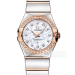 Basic Information ID: 123.20.24.60.08.002 Brand: Omega Series: Constellation Movement Type: Quartz Gender: Ladies Movement Model: Cal.1376 Movement Type: Quartz Manufacturer: Omega Movement Diameter: 9 x 15.15 mm Movement Thickness: 1.8 mm Number of Jewels: 5 Battery Life: 4 years Case Diameter: 24 mm Case Thickness: Not available Dial Color: Champagne Dial Shape: Round Strap Color: Two-tone Clasp Type: Folding Clasp Case Back: Solid Weight: Not available Water Resistance: 100 meters Hour Marker Type: Bat Hour Markers Clasp Spacing: Not available Lug Spacing: 16 mm Materials Case Material: Stainless Steel Dial Material: Not available Bezel Material: 18K Gold Crystal Material: Sapphire Crystal Glass Crown Material: 18K Gold Strap Material: 18K Gold and Stainless Steel; Two-tone Clasp Material: Stainless Steel Functions This watch has no other special functions.