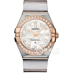 Basic Information ID: 123.20.31.20.08.001 Brand: Omega Series: Constellation Movement Type: Automatic Mechanical Gender: Ladies’ Movement: Movement Model: 8520 Movement Type: Automatic Mechanical Manufacturer: Omega Movement Diameter: 20mm Movement Thickness: 5.3mm Balance Wheel: Free-sprung Balance Spring Frequency: 25,200 vibrations per hour Hair Spring: Si 14 silicon Hair Spring Jewels: 28 Power Reserve: 50 hours Technical Certifications: Swiss Official Chronometer Testing Institute (COSC) Appearance: Case Diameter: 31mm Case Thickness: Not Available Dial Color: Champagne Dial Shape: Round Strap Color: Two-tone Clasp Type: Folding Clasp Case Back: Transparent Weight: Not Available Water Resistance: 100 meters Hour Marker Type: Bat Hour Markers Clasp Spacing: Not Available Lug Spacing: 19 Millimeter-long case material: Stainless steel; Dial material: Not available; Bezel material: 18k gold; Crystal material: Domed, double-sided anti-reflective, scratch-resistant sapphire crystal; Crown material: 18k gold; Strap material: 18k gold/stainless steel; Two-tone buckle material: Stainless steel; Functions: Date display