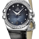 Basic Information ID: 123.55.24.60.55.003 Brand: Omega Series: Constellation Movement Type: Quartz Gender: Ladies Movement Model: Cal.1376 Movement Type: Quartz Manufacturer: Omega Movement Diameter: 9 x 15.15 mm Movement Thickness: 1.8 mm Number of Jewels: 5 Battery Life: 4 years Case Diameter: 24 mm Case Thickness: 8.1 mm Dial Color: Silver-white Dial Shape: Round Strap Color: Gold Clasp Type: Butterfly Clasp Case Back: Solid Weight: 117 grams Water Resistance: 100 meters Hour Markers: Diamond-set Hour Marker Spacing: Not available Lug Spacing: 16 mm Materials: Case Material: 18k gold Dial Material: Mother-of-pearl with diamonds Bezel Material: 18k gold with diamonds Crystal Material: Domed, scratch-resistant sapphire crystal with anti-reflective coating Crown Material: 18k gold Strap Material: 18k gold Clasp Material: 18k gold Functions: This watch has no other special functions.