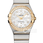 Basic Information: ID: 123.55.27.60.55.007; Brand: Omega; Series: Constellation; Movement Type: Quartz; Gender: Ladies; Movement Model: Cal.1376; Movement Type: Quartz; Manufacturer: Omega; Movement Diameter: 9 x 15.15 mm; Movement Thickness: 1.8 mm; Number of Jewels: 5; Battery Life: 4 years; Case Diameter: 27 mm; Case Thickness: Not available; Dial Color: Silver-white; Dial Shape: Round; Strap Color: Gold; Clasp Type: Folding Clasp; Case Back: Solid; Weight: Not available; Water Resistance: 100 meters; Hour Markers: Diamond-set; Clasp Spacing: Not available; Lug Spacing: 18 mm; Materials: Case Material: 18k Gold; Dial Material: Mother-of-Pearl with Diamonds; Bezel Material: 18k Gold with Diamonds; Crystal Material: Domed, scratch-resistant sapphire crystal with anti-reflective coating; Crown Material: 18k Gold; Strap Material: 18k Gold; Clasp Material: 18k Gold; Functions: This watch has no other special functions.