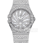 Basic Information ID: 123.55.35.20.55.002 Brand: Omega Series: Constellation Movement Type: Automatic Gender: Ladies Movement Model: Cal.2403 Movement Type: Automatic Manufacturer: Omega Base Movement: ETA 2892-A2 Movement Diameter: 25.6 mm Movement Thickness: 4.1 mm Jewels: 27 Power Reserve: 44 hours Technical Certification: Swiss Official Chronometer Testing Institute (COSC) Exterior: Case Diameter: 35 mm Case Thickness: 10.8 mm Dial Color: White Dial Shape: Round Strap Color: Gold Clasp Type: Butterfly Clasp Case Back: Transparent Weight: 184 grams Water Resistance: 100 meters Hour Marker Type: Diamond Hour Markers Clasp Spacing: Not Available Lug Spacing: 23 The watch features a 18K red gold case, a mother-of-pearl dial with diamonds, an 18K red gold bezel with diamonds, a domed, double-sided anti-reflective, scratch-resistant sapphire crystal, an 18K red gold crown, an 18K red gold strap, and an 18K red gold buckle. This watch has no other special functions.