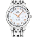 Basic Information ID: 131.20.28.60.55.002 Brand: Omega Series: Constellation Movement Type: Quartz Gender: Ladies Movement Model: 4061 Movement Type: Quartz Manufacturer: Omega Battery Life: 4 years Case Diameter: 28 mm Case Thickness: Not available Dial Color: White Dial Shape: Round Strap Color: Two-tone Clasp Type: Butterfly clasp with comfort adjustment function Case Back: Solid Weight: 90 grams Water Resistance: 30 meters Hour Markers: Diamond hour markers Clasp Spacing: Not available Lug Spacing: 17.5 mm Materials Case Material: Stainless steel Dial Material: White mother-of-pearl with diamond hour markers Bezel Material: Yellow 18K gold Crystal Material: Domed double-sided anti-reflective scratch-resistant sapphire crystal Crown Material: Yellow 18K gold Strap Material: Stainless steel/Yellow 18K gold; Two-tone Clasp Material: Stainless steel Functions: This watch has no other special functions.