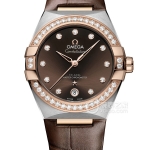Basic Information ID: 131.23.34.20.63.001 Brand: Omega Constellation Movement Type: Automatic Mechanical Gender: Ladies’ Movement Model: 8802 Movement Type: Automatic Mechanical Manufacturer: Omega Balance Wheel: Free-sprung Balance Spring Frequency: 25,200 vibrations per hour Hair Spring: Silicon Hair Spring Power Reserve: 55 hours Technical Certifications: Swiss Official Chronometer Testing Institute (COSC), Master Chronometer Appearance: Case Diameter: 34 mm Case Thickness: 11.7 mm Dial Color: Light Chestnut Dial Shape: Round Strap Color: Grayish Brown Clasp Type: Folding Clasp Case Back: Transparent Weight: 68 grams Water Resistance: 50 meters Hour Markers: Diamond-set Hour Markers Clasp Spacing: Not available Lug Spacing: 21.15 mm Materials: Case Material: Stainless Steel Dial Material: Not available Bezel Material: Sedna 18K Gold Crystal Material: Domed Double-sided Anti-reflective Sapphire Crystal Crown Material: Sedna 18K Gold Strap Material: Alligator Leather Clasp Material: Stainless Steel Functions: Date Display, Antimagnetic