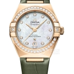 Basic Information ID: 131.28.29.20.58.001 Brand: Omega Constellation Movement Type: Automatic Mechanical Gender: Women’s Official Warranty: 5 Years Movement Model: 8700 Movement Type: Automatic Mechanical Power Reserve: 50 Hours Technical Certification: Swiss Observatory, Master Chronometer Appearance: Case Diameter: 29mm Case Thickness: 12mm Dial Color: Gold Dial Shape: Round Strap Color: Dark Brown Clasp Type: Pin Buckle Case Back: Transparent Weight: 46g Water Resistance: 50m Hour Marker Type: Diamond-set Hour Markers Clasp Spacing: Not Available Lug Spacing: 17.85mm Materials: Case Material: Stainless Steel, 18k Gold Dial Material: 18k Gold Bezel Material: 18k Gold with Diamonds Crystal Material: Sapphire Crystal Glass Crown Material: 18k Gold Strap Material: Alligator Leather Clasp Material: Stainless Steel Functions: Date Display, Antimagnetic