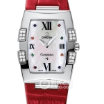 Basic Information: ID: 1886.79.36; Brand: Omega; Series: Constellation; Movement Type: Quartz; Gender: Ladies; Movement Model: Cal.1376; Manufacturer: Omega; Movement Diameter: 9 x 15.15 mm; Movement Thickness: 1.8 mm; Jewels: 5; Battery Life: 4 years; Case Diameter: 32.6 x 25 mm; Case Thickness: Not available; Dial Color: Silver-white; Dial Shape: Tonneau-shaped; Strap Color: White; Clasp Type: Folding Clasp; Case Back: Solid; Weight: Not available; Water Resistance: 30 meters; Hour Markers: Diamond-set; Hour Markers: Roman Numerals; Clasp Spacing: Not available; Lug Spacing: Not available; Materials: Case Material: Stainless Steel; Diamond-set Dial Material: Mother-of-Pearl, Stone-set Bezel Material: Not available; Crystal Material: Sapphire Crystal; Crown Material: Stainless Steel; Strap Material: Leather; Clasp Material: Stainless Steel; Functions: This watch has no other special functions.