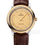 Basic Information: ID: 424.23.27.60.58.001; Brand: Omega; Series: Disc; Movement Type: Quartz; Gender: Ladies; Movement Model: 1376; Battery Life: 48 months/year; Technical Certification: Swiss Official Chronometer Testing Institute (COSC); Appearance: Case Diameter: 27.4 mm; Case Thickness: Not available; Dial Color: Gold; Dial Shape: Round; Strap Color: Dark Brown; Clasp Type: Not available; Case Back: Solid; Weight: Not available; Water Resistance: 30 meters; Hour Markers: Diamond-set; Clasp Spacing: Not available; Lug Spacing: 14 mm; Materials: Case Material: Stainless Steel; Dial Material: Gold-plated arched hands, while the hour markers are composed of 6 diamonds with gold-plated grooves and gold-plated Roman numerals; Bezel Material: Gold; Crystal Material: Scratch-resistant Sapphire Crystal; Crown Material: Gold; Strap Material: Leather Strap; Clasp Material: Stainless Steel; Functions: This watch has no other special functions.
