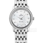 Basic Information ID: 424.55.27.60.55.002 Brand: Omega Series: Disc Airplane Movement Type: Quartz Gender: Ladies Movement Model: Cal.1376 Movement Type: Quartz Manufacturer: Omega Movement Diameter: 9 x 15.15 mm Movement Thickness: 1.8 mm Number of Jewels: 5 Battery Life: 4 years Case Diameter: 27.4 mm Case Thickness: Not available Dial Color: White Dial Shape: Round Strap Color: Gold Clasp Type: Folding Clasp Case Back: Transparent Weight: Not available Water Resistance: 30 meters Hour Markers: Diamond-set Hour Markers, Roman Numerals Clasp Spacing: Not available Lug Spacing: 14 mm Materials: Case Material: 18k Red Gold Dial Material: Mother-of-Pearl with Diamonds Bezel Material: 18k Red Gold with Diamonds Crystal Material: Scratch-resistant Sapphire Crystal Crown Material: 18k Red Gold Strap Material: 18k Red Gold Clasp Material: 18k Red Gold Functions: This watch has no other special functions.