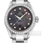Basic Information ID: 231.10.34.20.57.003 Brand: Omega Series: Seamaster Movement Type: Automatic Mechanical Gender: Ladies’ Movement: Movement Model: 8520 Movement Type: Automatic Mechanical Manufacturer: Omega Movement Diameter: 20mm Movement Thickness: 5.3mm Balance Wheel: Free-sprung Balance Spring Frequency: 25,200 vibrations per hour Hair Spring: Si 14 silicon Hair Spring Jewels: 28 Power Reserve: 50 hours Technical Certifications: Swiss Official Chronometer Testing Institute (COSC) Appearance: Case Diameter: 34mm Case Thickness: Not Available Dial Color: Pink Dial Shape: Round Strap Color: Silver Clasp Type: Folding Clasp Case Back: Transparent Weight: Not Available Water Resistance: 150 meters Hour Marker Type: Diamond-set Hour Markers Clasp Spacing: Not Available Lug Spacing: 16 Millimeter-long case material: Stainless steel; Dial material: Mother-of-pearl with diamonds; Bezel material: Stainless steel; Crystal material: Domed double-sided anti-reflective, scratch-resistant sapphire crystal; Crown material: Stainless steel, screw-down crown; Strap material: Stainless steel; Clasp material: Stainless steel; Functions: Date display, antimagnetic.
