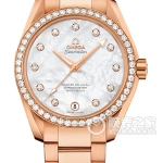 Basic Information ID: 231.20.39.21.55.003 Brand: Omega Series: Seamaster Movement Type: Automatic Gender: Ladies Movement Model: 8500 Movement Type: Automatic Manufacturer: Omega Balance Wheel: Free-sprung Balance Spring Frequency: 25,200 oscillations per hour Power Reserve: 60 hours Technical Certifications: Swiss Official Chronometer Testing Institute (COSC) Appearance: Case Diameter: 38.5 mm Case Thickness: Not available Dial Color: White Dial Shape: Round Strap Color: Two-tone Clasp Type: Folding Clasp Case Back: Transparent Weight: Not available Water Resistance: 150 meters Hour Marker Type: Diamond-set Hour Marker Spacing: Not available Lug Spacing: 19 Millimeter-long case material: Stainless steel; Dial material: Diamond-set white mother-of-pearl; Bezel material: Stainless steel/18k red gold; Crystal material: Domed double-sided anti-reflective, scratch-resistant sapphire crystal; Crown material: 18k red gold, screw-down crown; Strap material: Stainless steel/18k red gold; Two-tone buckle material: Red gold/Stainless steel; Functions: Date display, Antimagnetic.