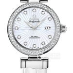 Basic Information ID: 231.25.30.20.55.001 Brand: Omega Series: Seamaster Movement Type: Automatic Mechanical Gender: Ladies’ Movement: Movement Model: 8520 Movement Type: Automatic Mechanical Manufacturer: Omega Movement Diameter: 20mm Movement Thickness: 5.3mm Balance Wheel: Free-sprung Balance Spring Frequency: 25,200 oscillations per hour Hair Spring: Si 14 silicon Hair Spring Jewels: 28 Power Reserve: 50 hours Technical Certifications: Swiss Official Chronometer Testing Institute (COSC) Appearance: Case Diameter: 30mm Case Thickness: Not available Dial Color: Silver Dial Shape: Round Strap Color: Two-tone Clasp Type: Folding Clasp Case Back: Transparent Weight: Not available Water Resistance: 150 meters Hour Markers: Diamond-set Hour Markers Clasp Spacing: Not available Lug Spacing: Not available Materials: Case Material: Stainless Steel Dial Material: Mother-of-Pearl Bezel Material: 18k Rose Gold with Diamonds Crystal Material: Sapphire Crystal Glass Crown Material: Not available Strap Material: Stainless Steel/18k Rose Gold; Two-tone Clasp Material: Stainless Steel Functions: Date Display