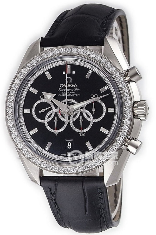Basic Information ID: 321.58.44.52.51.001 Brand: Omega Series: Special Movement Type: Automatic Mechanical Gender: Women’s Collaboration: Forever Olympic Edition Movement Model: Cal.3888 Movement Type: Automatic Mechanical Manufacturer: Omega Movement Diameter: 30mm Movement Thickness: 8.88mm Frequency: 28,800 vibrations per hour Jewels: 33 Power Reserve: 52 hours Technical Certification: Swiss Official Chronometer Testing Institute (COSC) Appearance: Case Diameter: 44.25mm Case Thickness: Not Available Dial Color: Black Dial Shape: Round Strap Color: Black Clasp Type: Folding Clasp Case Back: Solid Weight: Not Available Water Resistance: 100 meters Hour Marker Type: Bat Hour Markers Clasp Spacing: Not Available Lug Spacing: Not Available Materials: Case Material: 18k White Gold Dial Material: Not Available Bezel Material: 18k White Gold with Diamonds Crystal Material: Sapphire Crystal Crown Material: 18k White Gold Strap Material: Leather Strap Clasp Material: 18k White Gold Functions: Date Display, Chronograph