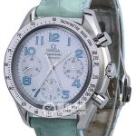 Basic Information ID: 3834.71.33 Brand: Omega Series: Speedmaster Movement Type: Automatic Mechanical Gender: Ladies Movement Model: Cal.3220 Movement Type: Automatic Mechanical Manufacturer: Omega Base Movement: ETA 2892-A2 Movement Diameter: 30mm Movement Thickness: 6.5mm Frequency: 28,800 vibrations per hour Jewels: 47 Power Reserve: 40 hours Introduction: Small Seconds, Chronograph, Tachymeter Exterior: Case Diameter: 35.5mm Case Thickness: 13mm Dial Color: Silver-white Dial Shape: Round Strap Color: Light Blue Clasp Type: Folding Clasp Case Back: Solid Weight: Not Available Water Resistance: 100 meters Hour Marker Type: Not Available Clasp Spacing: Not Available Lug Spacing: Not Available Materials: Case Material: Stainless Steel Dial Material: Mother-of-Pearl Bezel Material: Not Available Crystal Material: Sapphire Crystal Glass Crown Material: Stainless Steel Strap Material: Alligator Leather Clasp Material: Stainless Steel Functions: Chronograph