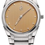 Basic Information Number: PFC914-1020021-100182 Brand: Parmigiani Fleurier Series: TONDA PF Movement Type: Automatic Mechanical Gender: Men’s Movement Model: PF703 Movement Type: Automatic Mechanical Manufacturer: Parmigiani Fleurier Movement Diameter: 30mm Movement Thickness: 3mm Balance Wheel: 950 Platinum Micro-rotor Frequency: 21,600 rpm Number of Jewels: 29 Number of Parts: 166 Power Reserve: 48 hours Appearance: Case Diameter: 40mm Case Thickness: 7.8mm Dial Color: Yellow Dial Shape: Round Strap Color: Silver Clasp Type: Folding Clasp Case Back: Transparent Weight: Not Available Water Resistance: 100 meters Hour Marker Type: Bat Hour Markers Clasp Spacing: Not Available Lug Spacing: Not Available Materials: Case Material: Stainless Steel Dial Material: Not Available Bezel Material: 950 Platinum Crystal Material: Sapphire Crystal Glass Crown Material: Stainless Steel Strap Material: Stainless Steel Clasp Material: Stainless Steel Functions: This watch has no other special functions. Thanks to the enthusiastic netizen VioletVole Corrections made to the parameters of this product