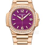 Basic Information Number 7010/1R-013 Brand Patek Philippe Series Sport Elegance Movement Type Quartz Gender Ladies Movement Model Cal.E 23-250 SC Movement Type Quartz Manufacturer Patek Philippe Movement Diameter 23.9 mm Movement Thickness 2.5 mm Number of Jewels 7 Number of Parts 100 Battery Life 3 Years Appearance Case Diameter: 32 mm Case Thickness: 6.9 mm Dial Color: Purple Dial Shape: Square Strap Color: Gold Clasp Type: Folding clasp with locking adjustment Case Back: Solid Weight: Not available Water Resistance: 30 meters (Patek Philippe implemented a new water resistance standard in 2024; this rating indicates the depth to which the watch can be submerged). Hour Marker Type: Bat-shaped Hour Marker Clasp Spacing: Not available Lug Spacing: Not available Material Case Material 18k Rose Gold Dial Material Purple lacquered dial with a “wave” pattern, featuring rose gold applied pointed hour markers and numerals, coated with white luminescent material. Rose gold A-shaped hands with white luminescent coating, 18k rose gold bezel set with 46 diamonds (0.8 carats), sapphire crystal glass, 18k rose gold crown, 18k rose gold strap, 18k rose gold buckle, date display.