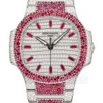 Patek Philippe Sport Elegance 7118/1452G-001 Automatic mechanism, 18k white gold, pavé-set with diamonds and rubies, 35.2mm