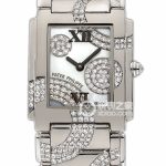 Basic Information: Item No. 4910/49G-001; Platinum Brand: Patek Philippe; Series: TWENTY~4; Movement Type: Quartz; Gender: Ladies; Movement Model: Cal.E 15; Movement Type: Quartz; Manufacturer: Patek Philippe; Movement Diameter: 15×13 mm; Movement Thickness: 1.8 mm; Frequency: 32768 Hz; Number of Jewels: 6; Number of Parts: 57; Battery Life: 3 years; Dimensions: Case Diameter: 30 mm; Case Thickness: Not available; Dial Color: Diamond-set; Dial Shape: Square; Strap Color: Silver; Clasp Type: Folding Clasp; Case Back: Solid; Weight: Not available; Water Resistance: 30 meters. Patek Philippe implemented a new water resistance standard in 2024; this water resistance rating indicates the depth to which the watch can be submerged. Hour marker type: Roman numerals; Clasp spacing: Not available; Lug spacing: Not available; Materials: Case material: 18k white gold with diamonds; Dial material: Mother-of-pearl with diamonds, the case, dial, and bracelet are set with 542 diamonds (~2.95 carats); Bezel material: 18k white gold with diamonds; Crystal material: Sapphire crystal glass; Crown material: 18k white gold; Strap material: Diamond-set 18k white gold; Clasp material: 18k white gold with diamonds; Functions: This watch has no other special functions.