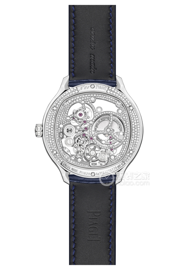 Basic Information Number: G0A45041 Brand: Piaget Series: PIAGET POLO Movement Type: Automatic Mechanical Gender: Men’s Movement Model: 1270D Movement Type: Automatic Mechanical Manufacturer: Piaget Movement Diameter: 35.4 mm Movement Thickness: 6 mm Frequency: 21,600 vibrations per hour Number of Jewels: 35 Number of Parts: 214 Power Reserve: 40 hours Appearance: Case Diameter: 49 mm Case Thickness: 10.3 mm Dial Color: Skeletonized Dial Shape: Skeletonized Strap Color: Blue Clasp Type: Folding Clasp Case Back: Transparent Weight: 107.3 grams Water Resistance: 30 meters Hour Markers: None Hour Marker Spacing: Not Available Lug Spacing: Not Available Materials: Case Material: 18k White Gold Dial Material: Not Available Bezel Material: Not Available Crystal Material: Sapphire Crystal Crown Material: Gem-set, 18k White Gold Strap Material: Alligator Leather Clasp Material: 18k White Gold Functions: Tourbillon