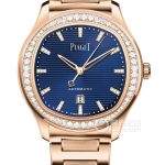 Basic Information Number: G0A49029 Brand: Piaget Series: PIAGET POLO Movement Type: Automatic Mechanical Gender: Ladies Movement Model: 500P1 Movement Type: Automatic Mechanical Manufacturer: Piaget Movement Diameter: 20.8 mm Movement Thickness: 3.63 mm Frequency: 28,800 vibrations per hour Number of Jewels: 24 Power Reserve: 40 hours Case Diameter: 36 mm Case Thickness: 8.8 mm Dial Color: Blue Dial Shape: Other Strap Color: Gold Clasp Type: Folding Clasp Case Back: Transparent Weight: Not available Water Resistance: 50 meters Hour Marker Type: Diamond-set Hour Markers Clasp Spacing: Not available Lug Spacing: Not available Materials Case Material: 18k rose gold Dial Material: Not available Bezel Material: 18k rose gold, set with 60 brilliant-cut diamonds (approx. 0.97 carats) Crystal Material: Sapphire Crystal Crown Material: 18k rose gold Strap Material: 18k rose gold Clasp Material: Not available Functions: Date Display