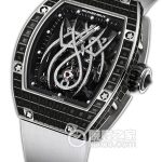 Basic Information: Model Number RM19-01WG-BLACK BAG; Brand: Richard Mille; Series: Ladies; Movement Type: Manual Mechanical; Gender: Women; Limited Edition: 3; Movement: Movement Model RM 19-01; Movement Type: Manual Mechanical; Manufacturer: Richard Mille; Movement Diameter: 30.20 x 28.60 mm; Movement Thickness: 4.97 mm; Balance Wheel: 10 mm; Material: Beryllium Bronze (Glucydur); 2 amplitudes; 4 adjusting screws; Instantaneous Inertia: 11.50 mg.cm²; Tilt Angle: 53°; Frequency: 21,600 vibrations per hour; Hairspring: Nivarox® ELINVAR alloy; Shock Protector: KIF ELASTOR KE 160 B28; Jewels: 21; Power Reserve: 48 hours; Case Diameter: 46.40 x 38.30 mm Case thickness: 12.45 mm Dial color: Black Dial shape: Tonneau-shaped Strap color: White Clasp type: Folding clasp Case back: Transparent Weight: Not available Water resistance: Not available Hour marker type: None Hour marker spacing: Not available Lug spacing: Not available Materials Case material: 18K white gold with black gemstones Dial material: Not available Bezel material: Not available Crystal material: Sapphire crystal Crown material: 18K white gold Strap material: Rubber Clasp material: 18K white gold Functions: Power reserve indicator Tourbillon