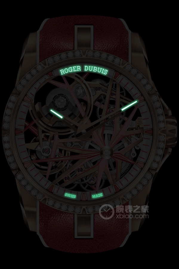 Basic Information ID: DBEX1137; Brand: Roger Dubuis; Series: King of Kings; Movement Type: Automatic Mechanical; Gender: Men’s; Limited Edition: 28; Movement Model: RD720SQ Movement Type: Automatic Mechanical; Manufacturer: Unknown; Movement Thickness: 5.95 mm; Frequency: 28,800 vibrations per hour; Jewels: 32; Parts: 178; Power Reserve: 72 hours; Case Diameter: 42 mm; Case Thickness: Not available; Dial Color: Skeletonized; Dial Shape: Skeletonized; Strap Color: Red; Clasp Type: Folding Clasp; Case Back: Transparent; Weight: Not available; Water Resistance: Not available; Hour Marker Type: Luminous; Clasp Spacing: Not available; Lug Spacing: Not available; Materials: Case Material: 750/1000 5N Gold Alloy; Dial Material: 750/1000 5N Gold Alloy; Bezel Material: 750/1000 5N Gold Alloy with Diamonds; Crystal Material: Sapphire Crystal Glass; Crown Material: 750/1000 5N Gold Alloy; Strap Material: Leather; Clasp Material: 750/1000 Rose Gold; Functions: This watch has no other special functions.