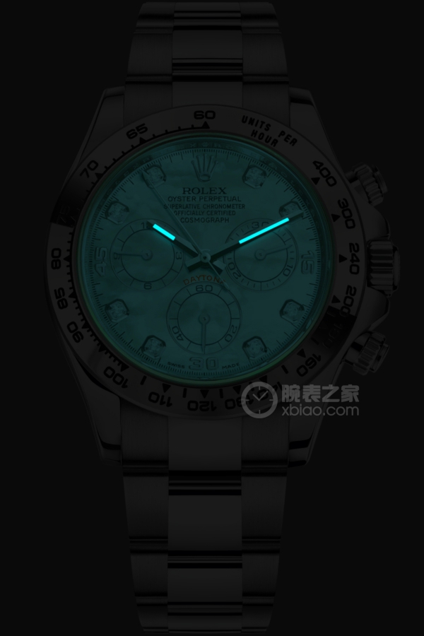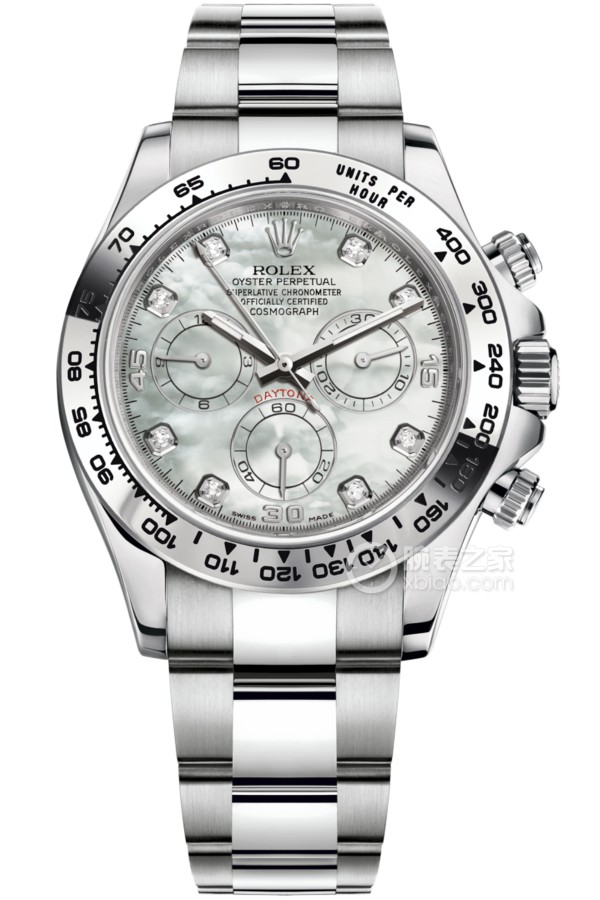 Basic Information Number: m116509-0064 Brand: Rolex Series: Cosmograph Daytona Movement Type: Automatic Gender: Men’s Movement Model: Cal. 4130 Movement Type: Automatic Manufacturer: Rolex Power Reserve: 72 hours Technical Certification: Superlative Chronometer Certification Appearance: Case Diameter: 40mm Case Thickness: Not Available Dial Color: White Dial Shape: Round Strap Color: Silver Clasp Type: Folding Oysterclasp with 5mm Easylink Extension System Case Back: Not Available Weight: Not Available Water Resistance: 100 meters Hour Markers: Diamond-set Hour Markers Spacing: Not Available Lug Spacing: Not Available Material: Case Material: 18k white gold Dial Material: Diamond-set, mother-of-pearl dial Bezel Material: Not Available Crystal Material: Scratch-resistant sapphire crystal Crown Material: White gold Strap Material: 18k white gold, Oyster, three-link clasp Material: 18k white gold Functions: Chronograph, Antimagnetic