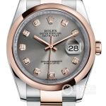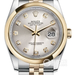 Basic Information Number 116203-0173 Brand Rolex Series Datejust Movement Type Automatic Mechanical Gender Men’s Movement Movement Model 3135 Movement Type Automatic Mechanical Manufacturer Rolex Hairspring Parachrom Hairspring with paramagnetic blue Power Reserve 48 hours Technical Certifications Superlative Chronometer Certification Appearance Case Diameter: 36 mm Case Thickness: 12 mm Dial Color: Gold Dial Shape: Round Strap Color: Two-tone Clasp Type: Folding Clasp Case Back: Solid Case Back Weight: Not available Water Resistance: 100 meters Hour Marker Type: Diamond-set Hour Markers Clasp Spacing: Not available Lug Spacing: Not available Materials Case Material: Stainless Steel Dial Material: Not available Bezel Material: 18k Gold Crystal Material: Sapphire Crystal Glass Crown Material: Not available Strap Material: Stainless Steel-18k Gold; Two-tone Clasp Material: Stainless Steel-18k Gold Functions: Date Display