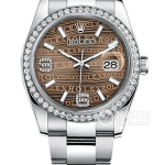 Basic Information: ID 116203, White mother-of-pearl dial, diamond-set hour markers, commemorative strap, Rolex series, Datejust, movement type, automatic mechanical, unisex, movement model 3135. Movement Type: Automatic Mechanical; Manufacturer: Rolex; Hairspring: Parachrom blue; Power Reserve: 48 hours; Technical Certification: Superlative Chronometer Certification; Appearance: Case Diameter: 36 mm; Case Thickness: 12 mm; Dial Color: White; Dial Shape: Round; Strap Color: Two-tone; Clasp Type: Folding Clasp, Oyster Clasp with 5 mm Easylink Extension System; Case Back: Solid; Weight: Not yet available; Water Resistance: 100 meters; Hour Markers: Diamond-set; Clasp Spacing: Not yet available; Lug Spacing: Not yet available; Materials: Case Material: Stainless Steel; Dial Material: White Mother-of-Pearl; Diamond-forward Bezel Material: 18k Gold/Domed Bezel; Crystal Material: Scratch-resistant Sapphire Crystal with Anti-reflective Properties; Cyclops Lens (2.5x) for Date Window; Crown Material: 18k Gold; Strap Material: 18k Gold/Stainless Steel, Oyster, Two-tone, Five-link Clasp Material: 18k Gold/Stainless Steel; Functions: Date Display