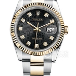 Basic Information ID 116231 Silver Dial with Diamond-set Oyster Strap Brand: Rolex Series: Datejust Movement Type: Automatic Mechanical Gender: Unisex Movement Model: 3135 Movement Type: Automatic Mechanical Manufacturer: Rolex Hairspring: Parachrom Hairspring (Flat Magnetism), Power Reserve: 48 Hours Technical Certifications: Superlative Chronometer Certification Appearance: Case Diameter: 36mm Case Thickness: 12mm Dial Color: Silver Dial Shape: Round Strap Color: Two-tone Clasp Type: Oyster Clasp with 5mm Easylink Extension System Case Back: Solid Case Back Weight: Not Available Water Resistance: 100 meters Hour Markers: Diamond-set Hour Markers Clasp Spacing: Not Available Lug Spacing: Not Available Material: Case Material: 904L Stainless Steel (Oystersteel) The dial is silver with diamonds; the bezel is 18ct Everose gold; the crystal is knurled and scratch-resistant sapphire crystal with an anti-reflective cyclops lens and magnifying date window; the crown is a winding crown with a screw-down Twinlock double waterproof system; the bracelet is made of 904L stainless steel (Oystersteel)/18ct Everose gold; or two-tone, Oyster, three-link clasp made of 904L stainless steel (Oystersteel)/18ct Everose gold. Functions include a date display.