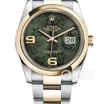 Basic Information: ID 116243 Black Dial with Diamonds; Brand: Rolex; Series: Datejust; Movement Type: Automatic; Gender: Unisex; Movement Type: Automatic; Technical Certifications: Superlative Chronometer Certification; Appearance: Case Diameter: 36mm; Case Thickness: Not Available; Dial Color: Black; Dial Shape: Round; Strap Color: Two-Tone; Clasp Type: Folding Clasp, Concealed Crown Buckle; Case Back: Not Available; Weight: Not Available; Water Resistance: 100 meters; Hour Marker Type: Bat; Clasp Spacing: Not Available; Lug Spacing: Not Available; Materials: Case Material: Stainless Steel; Dial Material: Not Available; Bezel Material: 18k Gold with Diamonds; Crystal Material: Scratch-resistant Sapphire Crystal, Anti-reflective; Cyclops Lens (2.5x) for Date Window; Crown Material: 18k Gold; Strap Material: 18k Gold/Stainless Steel; Two-Tone, Oyster, Three-Link Clasp Material: Stainless Steel; Functions: Date Display